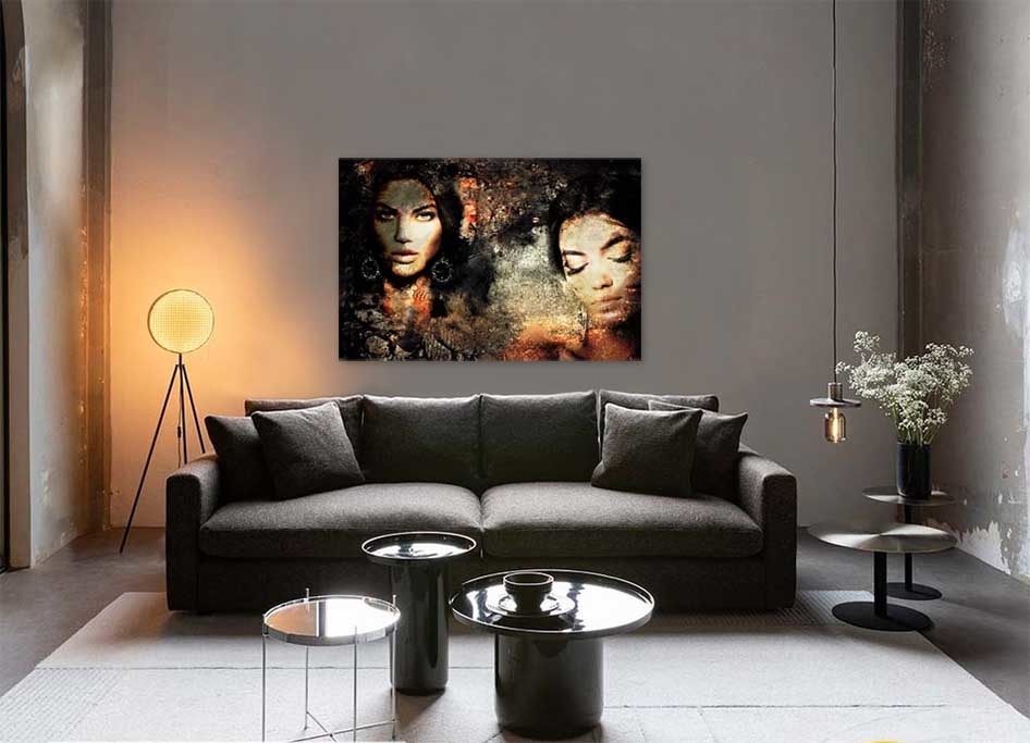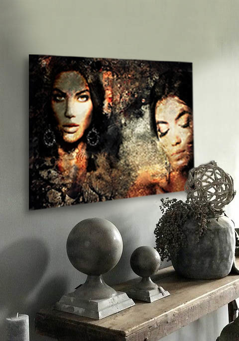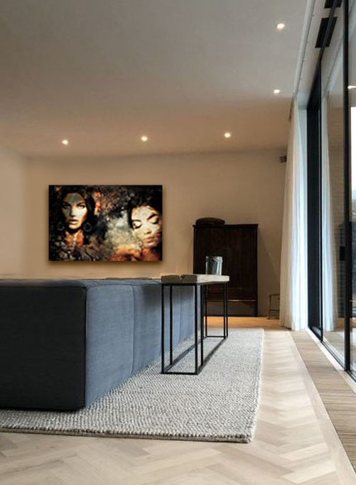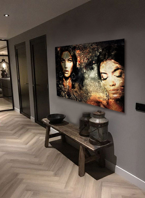 Eine geschmackvolle Fotokunst mit abstrakter Basis und zweimal das Gesicht einer Frau. Der kraftvolle, verführerische Blick der Frau zieht sofort Ihre Aufmerksamkeit auf sich und die warmen Töne schaffen eine geheimnisvolle und gemütliche Atmosphäre in Ihrem Raum. Diese einzigartige Kunst verleiht Ihrem Zuhause eine persönliche Note, ein Stil für den wahren Maximalisten und Kunstliebhaber. Das Fotokunstwerk passt perfekt in ein modernes Interieur und verleiht Ihrer Wand einen stilvollen Look. Abstract Statement' ist ein Xiart Special und wird inklusive Echtheitszertifikat geliefert.