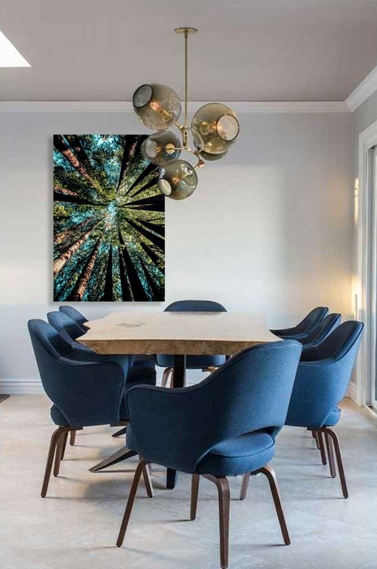 Eine schöne Natur Fotokunst von einer Gruppe von Bäumen gegen einen klaren blauen Himmel. Ein Wald ist ein ursprüngliches Symbol für Leben und Überfluss. Es ist der Ort, an dem das Leben gedeiht und Sie Ihren Seelenfrieden finden können. Sie schätzen das Leben auf eine andere Weise. Dieses Fotokunstwerk ist ein Traum, wenn Sie Ruhe, Gelassenheit und Tiefe in Ihrem Raum schaffen wollen. Außerdem wird niemand der Natur überdrüssig, oder? Das Fotokunstwerk sieht zum Beispiel in einem Arbeitszimmer, im Badezimmer oder im Schlafzimmer schön aus.