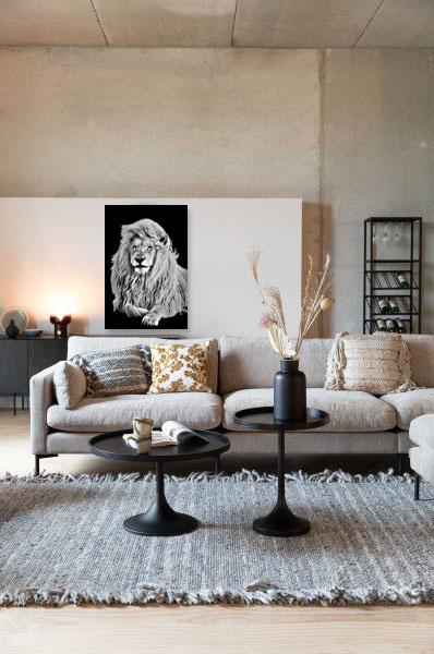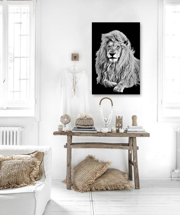 Möchten Sie etwas anderes an der Wand, einen Druck mit Charisma? Dann ist ein Fotokunstwerk des Löwen eine echte Bereicherung im Haus. Der Löwe auf diesem Fotokunstwerk hat eine schöne, weiche Mähne, die dem Tier ein imposantes und beeindruckendes Aussehen verleiht. Außerdem hat der Löwe ein weises Aussehen, was dieses Fotokunstwerk nicht nur im Wohnzimmer schön macht, sondern auch in Büros und anderen Räumen, in denen Stärke und Weisheit erwünscht sind. Das kraftvolle Schwarz-Weiß-Porträt dieses Raubtiers passt zu vielen Lebensstilen, von ländlich bis modern.