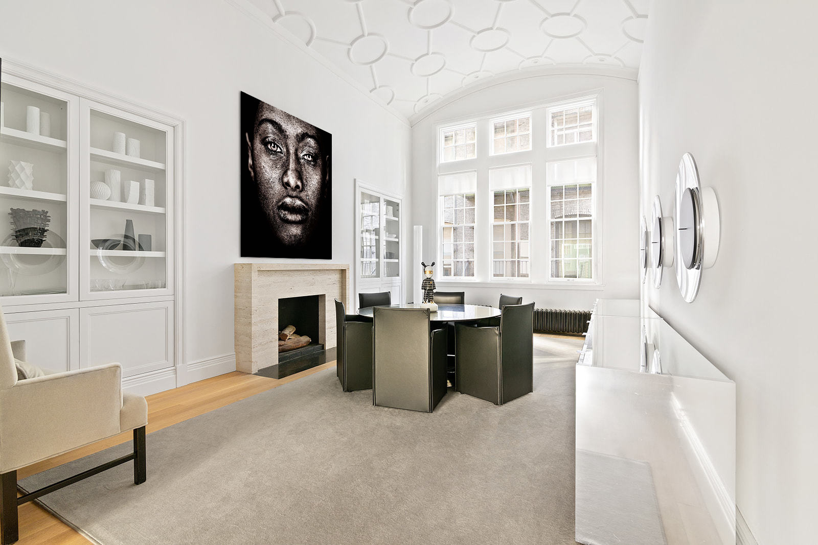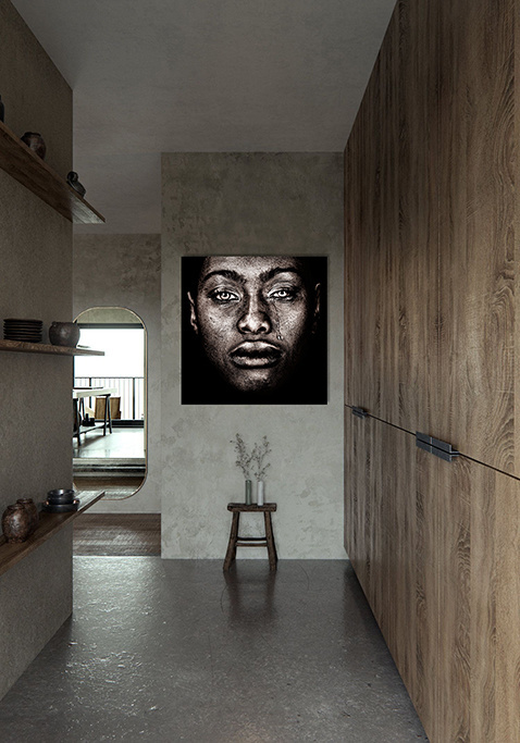 Die Fototafel hat rundum ein luxuriöses Aluminiumprofil auf der Rückseite und kann mit einem Schraubendaumen (Haken) an die Wand gehängt werden. Das hintere Profil sorgt für Stabilität und verhindert ein Verziehen der Verkleidung. Da das Profil 2 Zentimeter dick ist, wird ein schwebender Effekt Ihres Kunstwerks an der Wand erzeugt.