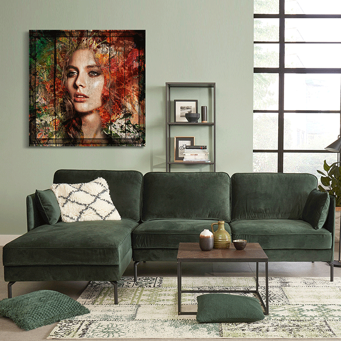 Bereichern Sie Ihr Interieur mit diesem schönen Kunstwerk einer Dame mit intensivem, engelsgleichem Blick. Die intensiven Farben stechen auf den ersten Blick gut hervor. Das schöne Porträt dieser Dame ist weiter im Hintergrund, was dieser Fotokunst ein geheimnisvolles Gefühl verleiht. Wagen Sie es, Ihre Wände mit der zeitlosen Fotokunst Angelic Dona zu betonen. Diese Kunst wirkt auch auf einer farbigen Wand.