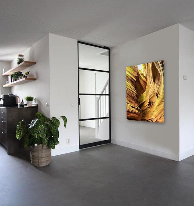 Da das ausgewählte Bild direkt auf Plexiglas gedruckt wird und bei größeren Abmessungen eine Dicke von 3 mm bis 5 mm aufweist, erhält das Bildmaterial noch mehr Tiefe. Sie haben das Gefühl, sozusagen in das Foto eintreten zu können. Dies ist hauptsächlich auf die Tatsache zurückzuführen, dass Plexiglas mehr Licht durchlässt als normales Glas. Die Farben wirken schärfer, fast brillant und es gibt einen optimalen Tiefeneffekt und damit Kontrast. Fotokunst, bei der die leuchtenden Farben mit einer langen Lebensdauer und einem luxuriösen Aussehen spritzen.