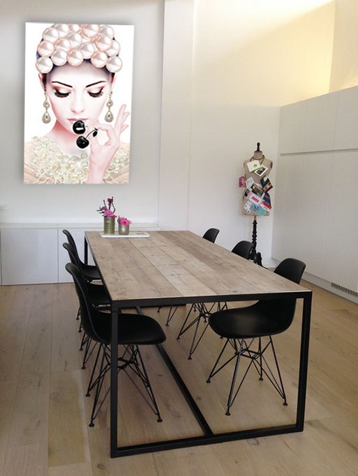 Die Fototafel hat rundum ein luxuriöses Aluminiumprofil auf der Rückseite und kann mit einem Schraubendaumen (Haken) an die Wand gehängt werden. Das hintere Profil sorgt für Stabilität und verhindert ein Verziehen der Verkleidung. Da das Profil 2 Zentimeter dick ist, wird ein schwebender Effekt Ihres Kunstwerks an der Wand erzeugt.