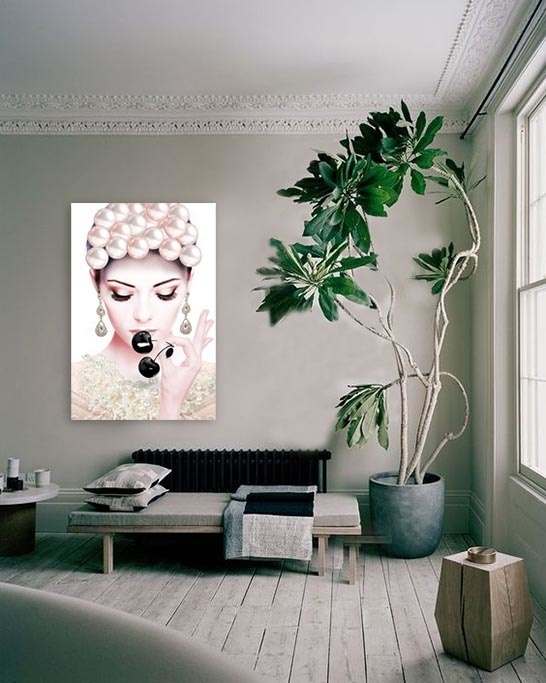 Schönes helles Bild einer Frau, die eine Kirsche isst. Toll in einem modernen Interieur, ein Blickfang in jedem Raum. In limitierter Auflage mit Echtheitszertifikat, nur bei Xiart erhältlich.