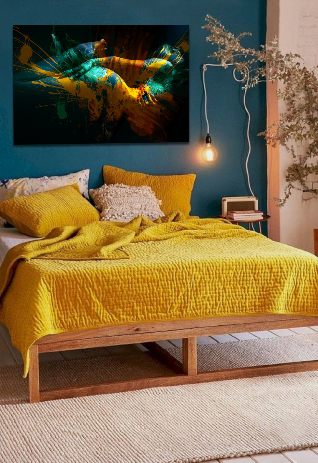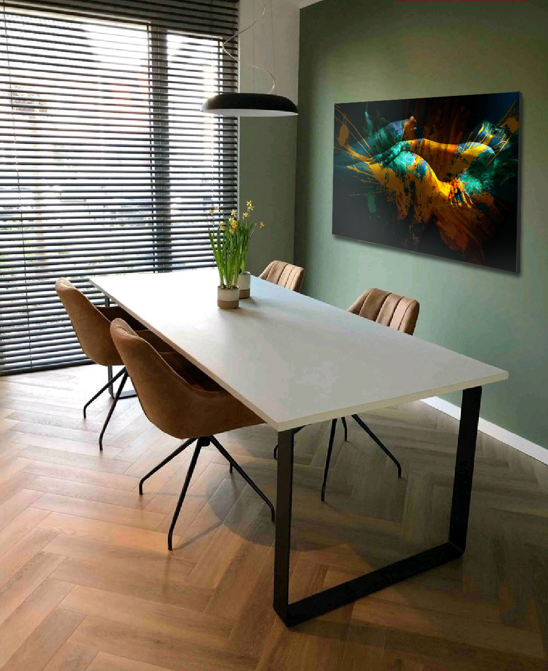 Eine schöne Fotokunst einer Frau, die zu schweben scheint. Sie nimmt eine sinnliche Haltung ein, die Ihren Blick direkt auf ihre fantastischen Formen fallen lässt. Die Farben auf ihrem Körper geben der Fotokunst einen abstrakten Touch. Ein ideales Kunstwerk für alle, die ein Prunkstück an der Wand lieben. Denn was ist mächtiger als der weibliche Körper? Dieses Fotokunstwerk ist ein Xiart Special und in limitierter Auflage erhältlich. Inklusive Echtheitszertifikat.