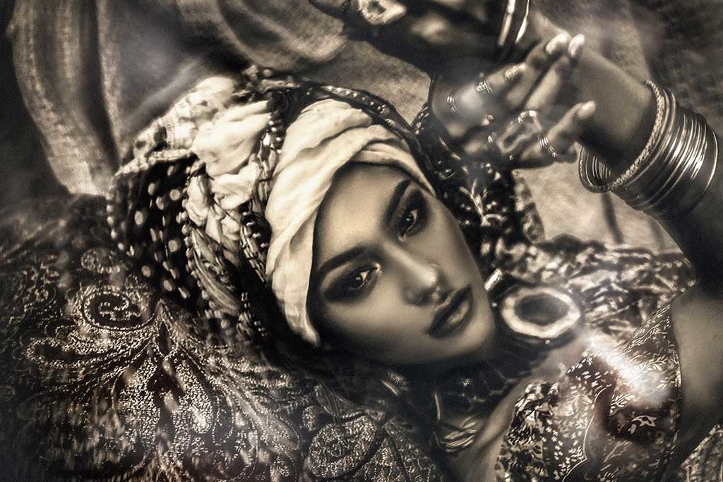Schöne Sepia-Darstellung einer Frau im Boho-Stil. Sehen Sie auch unsere anderen schönen Bilder aus unserer Sammlung.