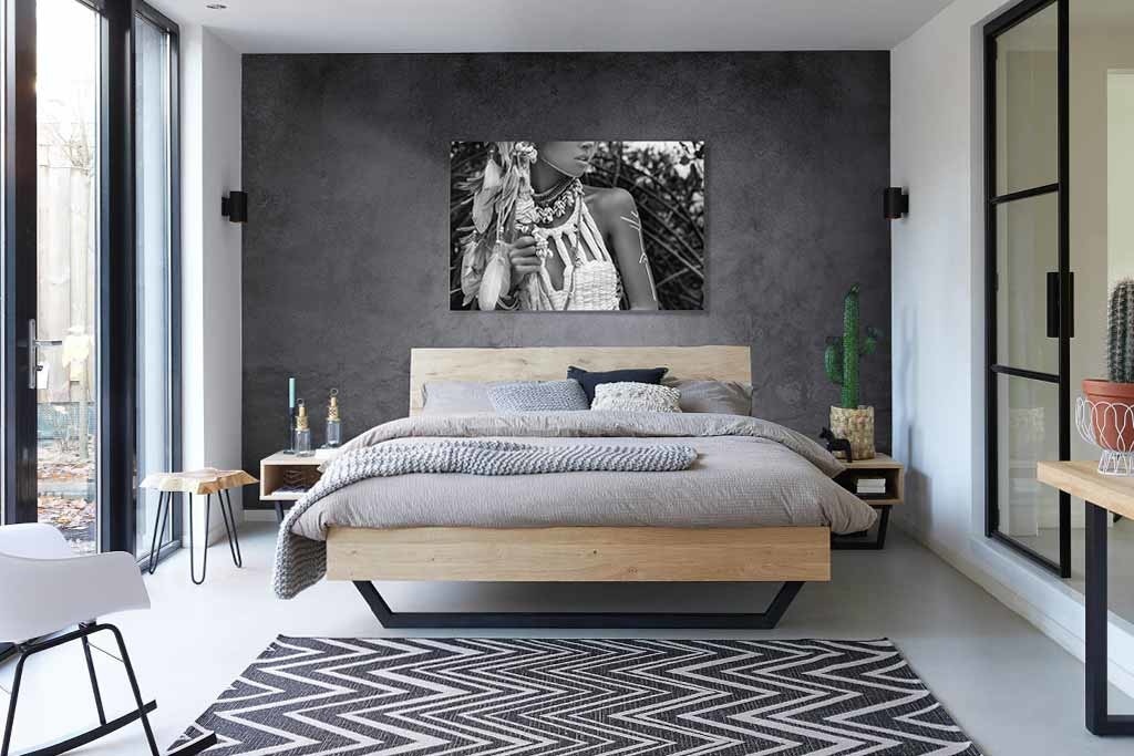 Die Fototafel hat rundum ein luxuriöses Aluminiumprofil auf der Rückseite und kann mit einem Schraubendaumen (Haken) an die Wand gehängt werden. Das hintere Profil sorgt für Stabilität und verhindert ein Verziehen der Verkleidung. Da das Profil 2 Zentimeter dick ist, wird ein schwebender Effekt Ihres Kunstwerks an der Wand erzeugt.