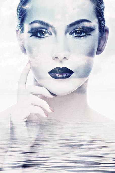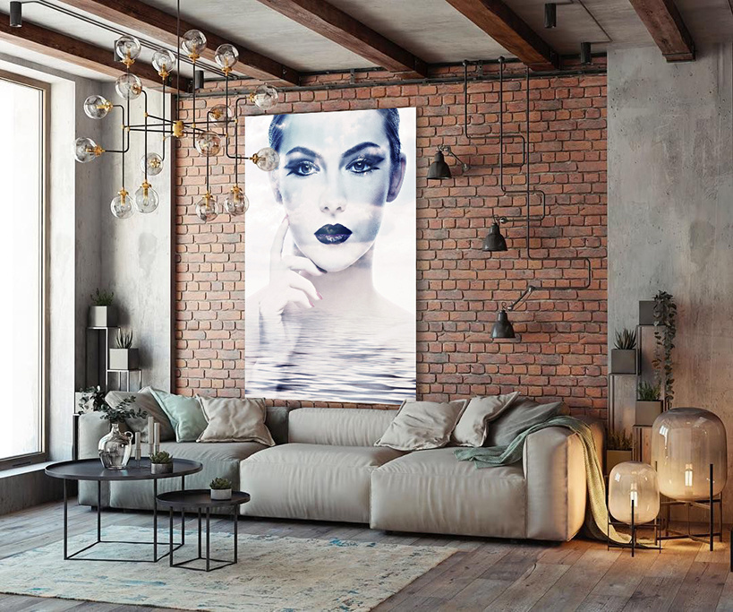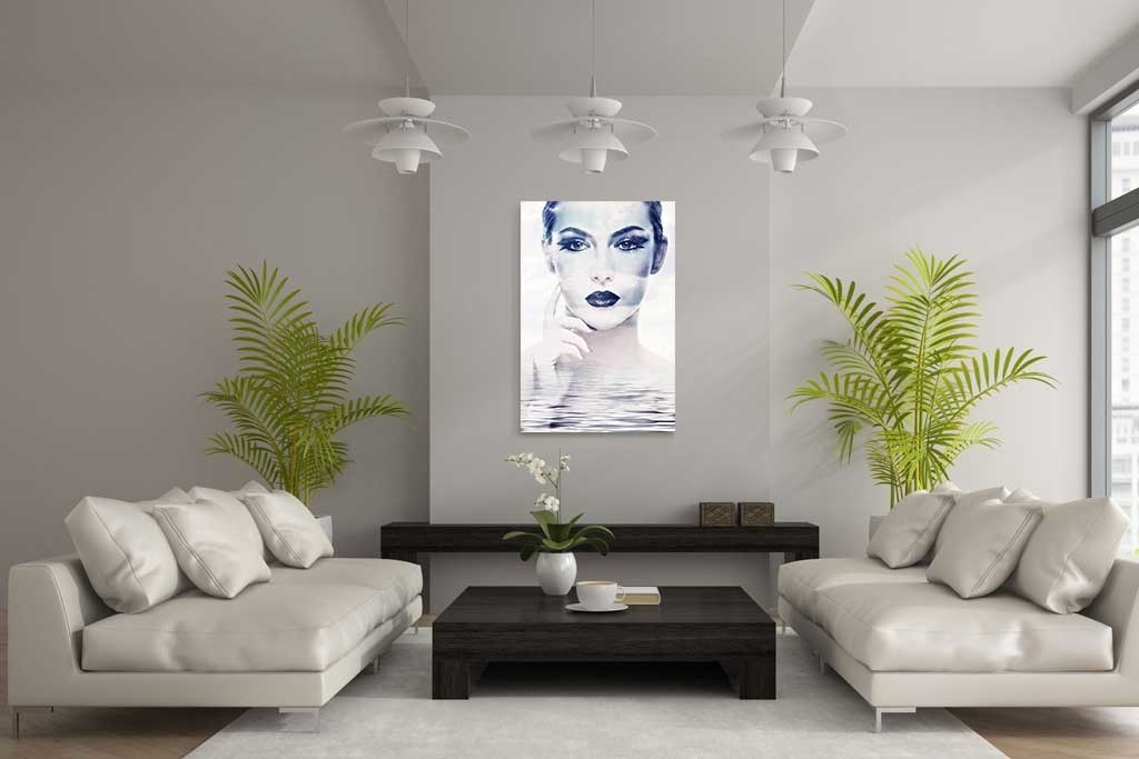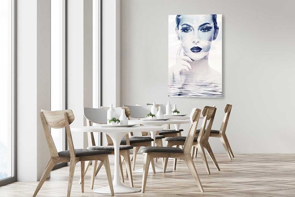 Schönes Bild einer künstlerisch dargestellten Frau. Die hellen Farbtöne verleihen der Fotokunst ein schönes, ruhiges Aussehen, das perfekt in ein modernes, helles Interieur passt.