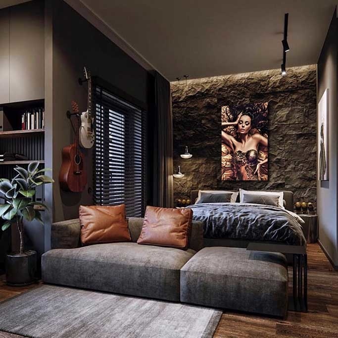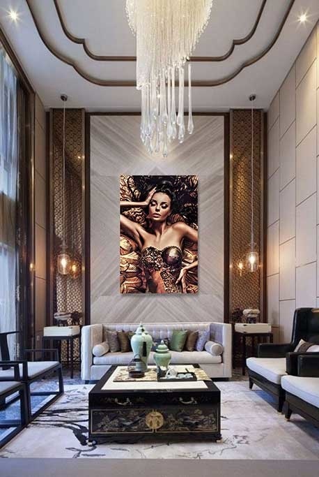 Schöne Bronze-Goldtöne und schönes Bild einer Frau in schönen Dessous, spannendes Bild in schönen Farbkontrasten.