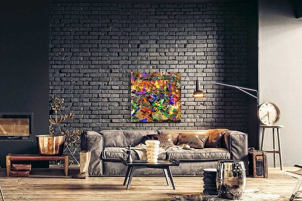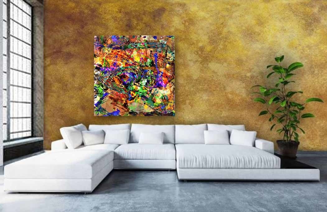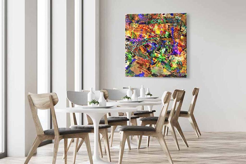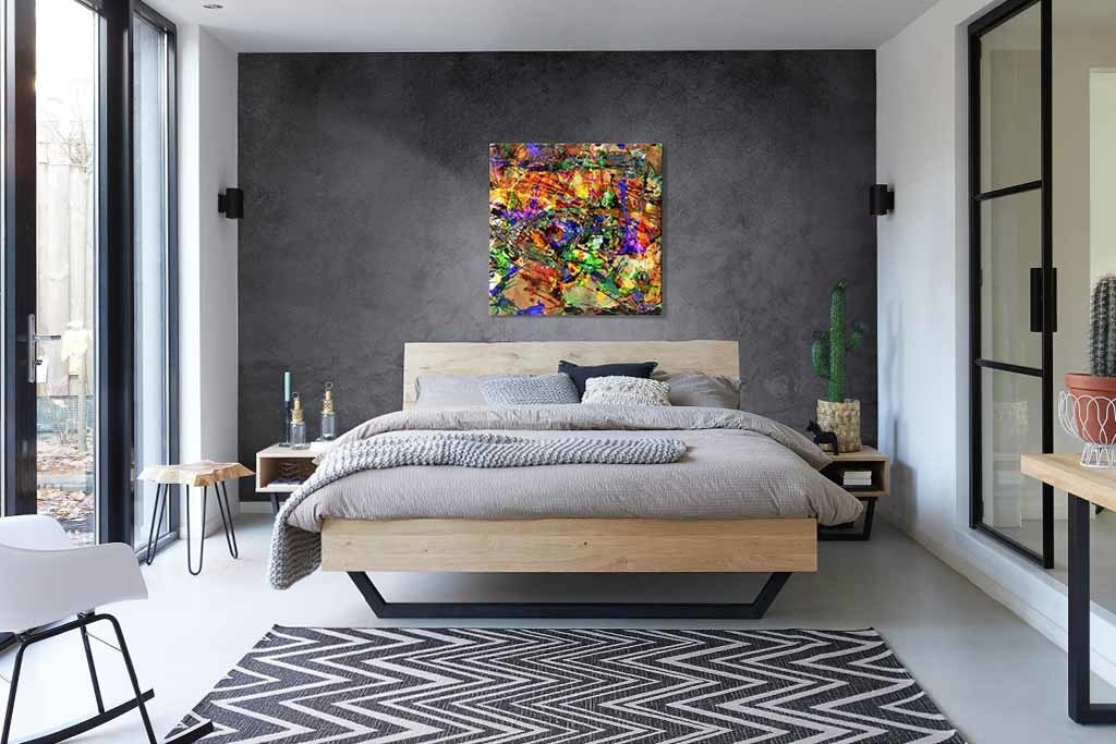 Buntes Bild eines abstrakten Kunstwerks. Durch die vielen Farben und Formen wird Ihnen dieses Bild nicht langweilig. Sehr gut geeignet für Innenräume, die etwas Farbe vertragen können. Sieht gut aus im Schlafzimmer, Wohnzimmer, Flur und Büro. Passt zu vielen Stilen.