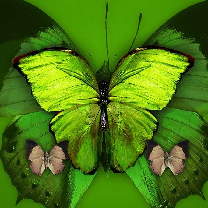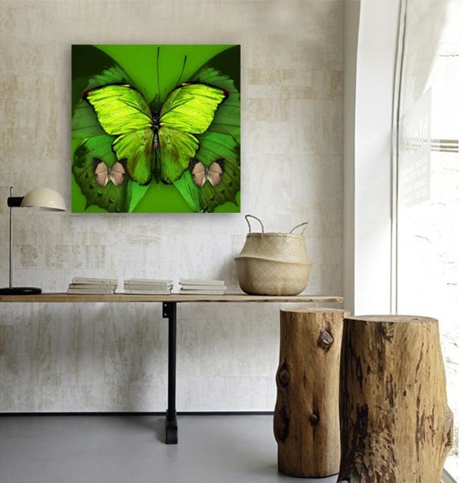 Schöne Verarbeitung von Schmetterlingen in erfrischendem Apfelgrün, sehr schöne Komposition für alle, die Schmetterlinge lieben und ihrer Inneneinrichtung einen markanten Akzent verleihen möchten. Speziell für Xi art entwickelt und in limitierter Auflage erhältlich, mit Echtheitszertifikat.