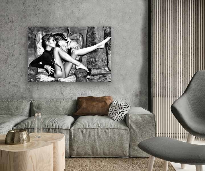 Die Fototafel hat rundum ein luxuriöses Aluminiumprofil auf der Rückseite und kann mit einem Schraubendaumen (Haken) an die Wand gehängt werden. Das hintere Profil sorgt für Stabilität und verhindert ein Verziehen der Verkleidung. Da das Profil 2 Zentimeter dick ist, wird ein schwebender Effekt Ihres Kunstwerks an der Wand erzeugt.