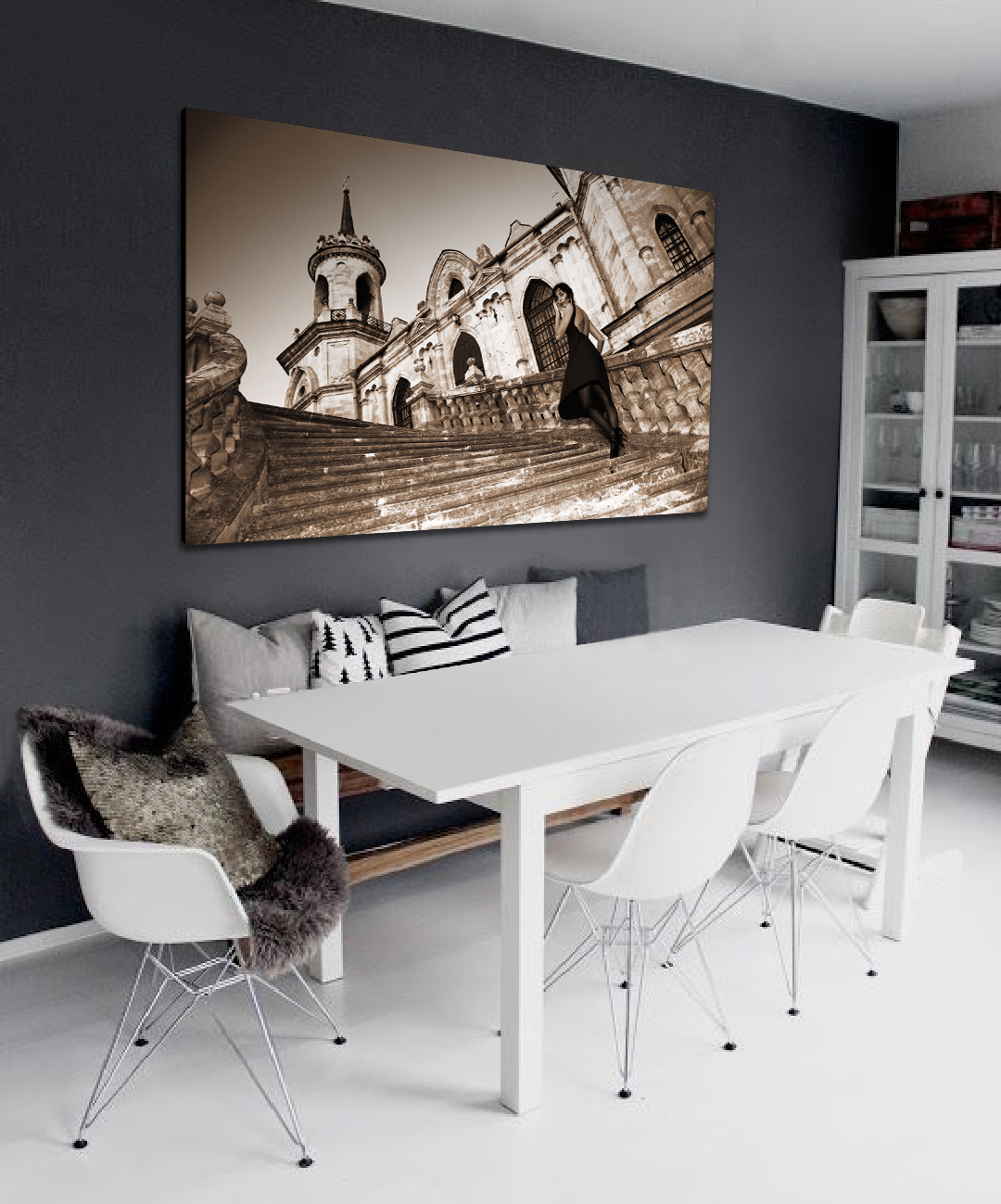 Città del Vaticano' ist eine märchenhafte Fotokunst des kleinsten unabhängigen Staates der Welt: Vatikanstadt. Die Gebäude sind beeindruckend und haben eine reiche Geschichte. Auf diesem Bild sehen Sie eines dieser schönen Gebäude, fotografiert aus einem niedrigen Winkel. Die großzügige Treppe und die ausgestopfte Frau geben dem Fotokunstwerk einen majestätischen Touch. Dank seiner neutralen Töne passt dieses Kunstwerk in jeden Raum.