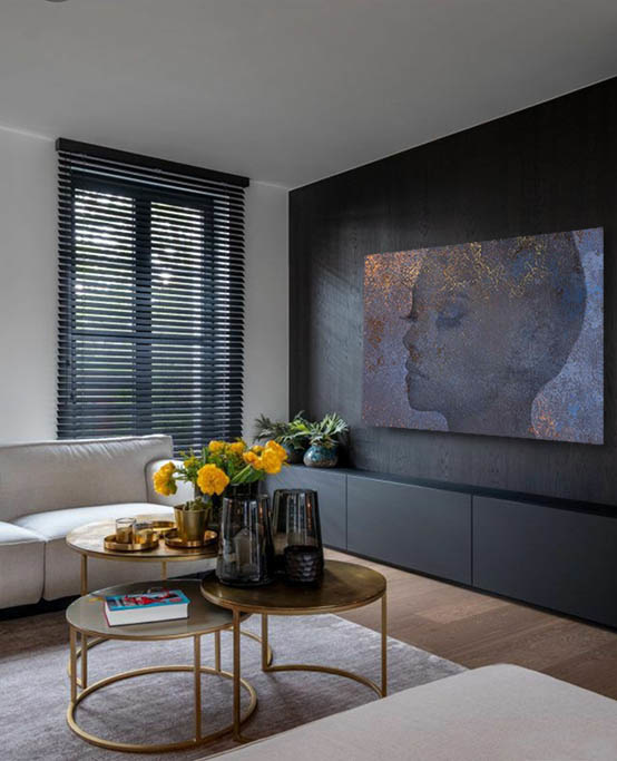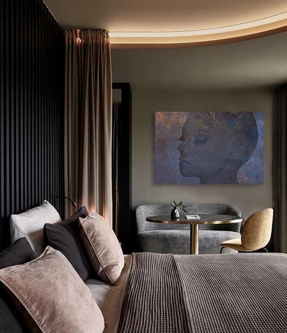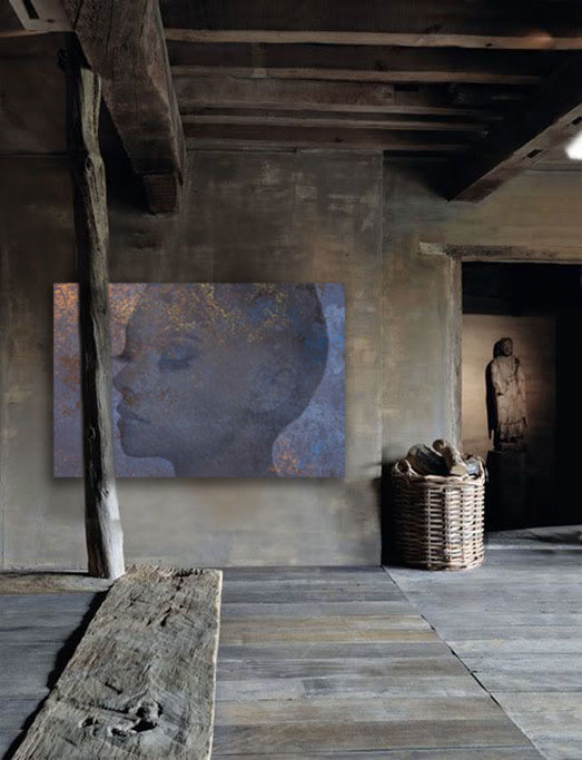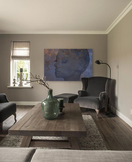 Eine schöne Silhouette eines Frauengesichts mit langen, eleganten Wimpern. Das Fotokunstwerk ist mit einem Schild aus dunkelblauen und goldenen Farbtönen versehen, die ineinander fließen. Dank der vielen Details und des geheimnisvollen Untertons wird Ihnen bei dieser Fotokunst nie langweilig. Für ein atemberaubendes Kunstwerk an der Wand wählen Sie das Fotokunstwerk 'Closure'.
