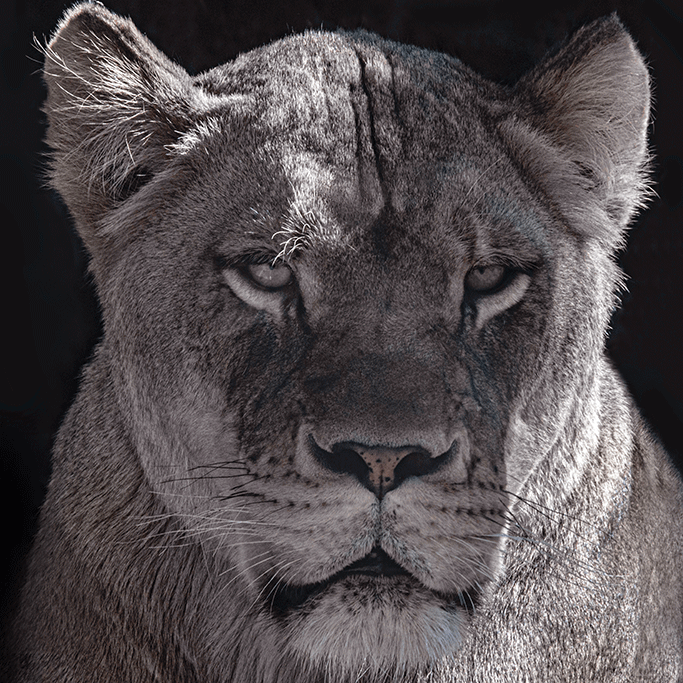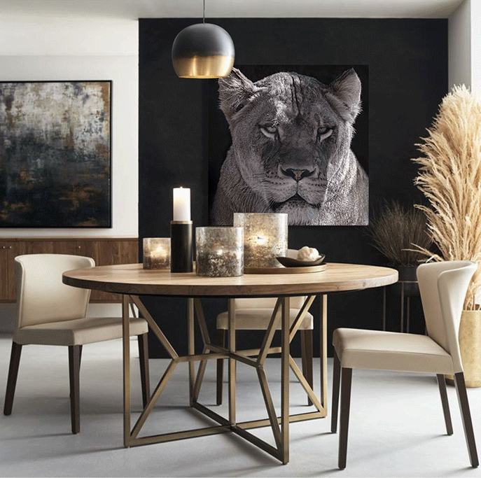 Eine beeindruckende Fotokunst einer Löwin in Schwarz-Weiß. Die schönen stechenden Augen verleihen dem Tier ein charmantes Aussehen. Diese Löwenkönigin steht für Stärke und Schutz und passt in jeden Raum, in dem dies gewünscht ist. Aber auch, wenn Sie einfach ein einzigartiges Kunstwerk aufhängen möchten, um einem Raum mehr Flair zu verleihen. Die schwarz-weiße Ausführung sorgt dafür, dass dieses Fotokunstwerk zu jeder Einrichtung passt.
