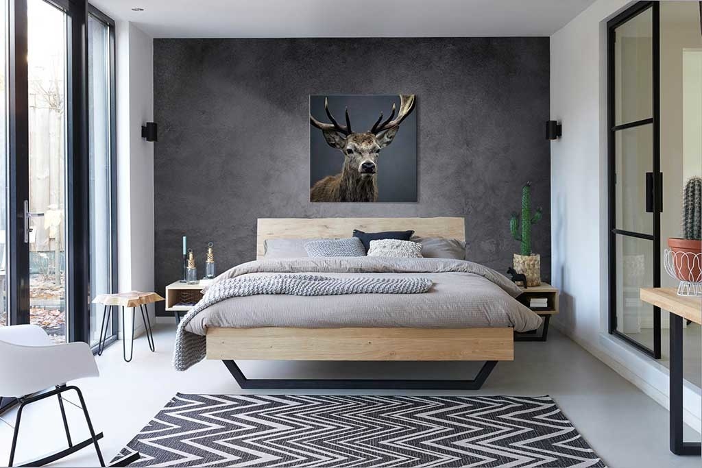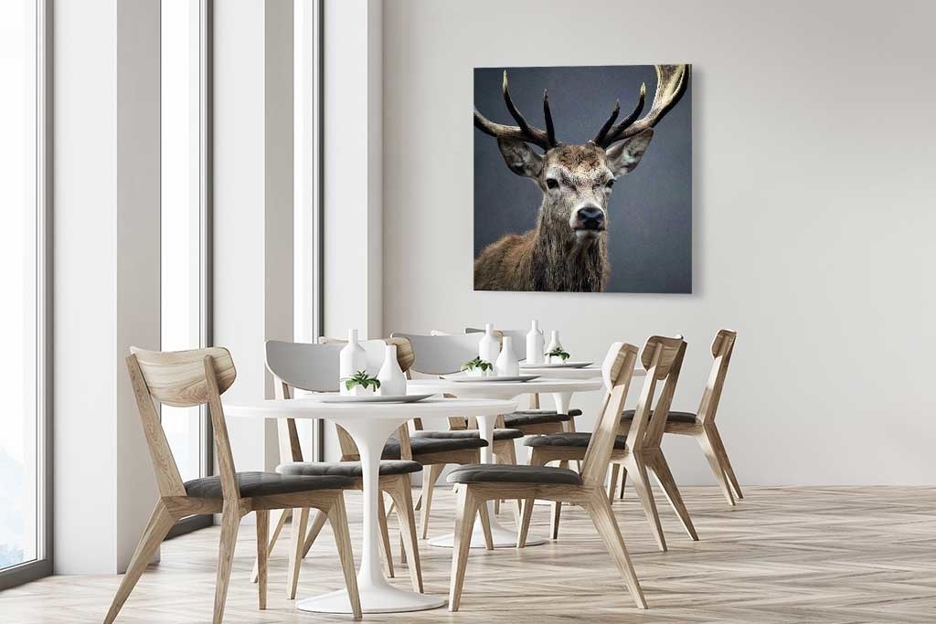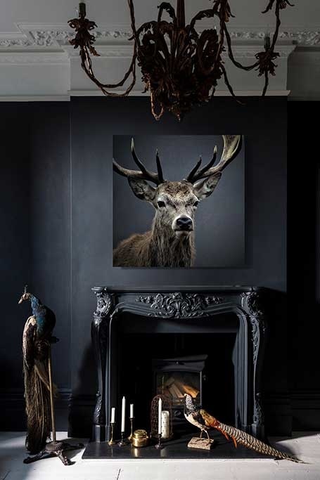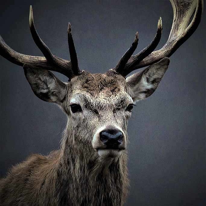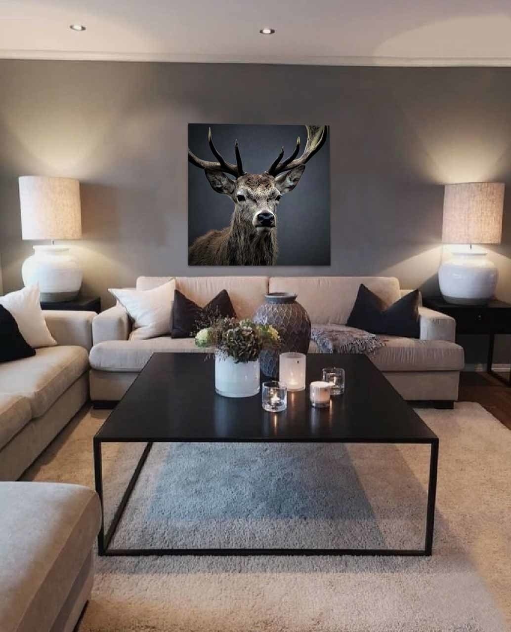 Hirsch mit schönem Geweih, dunkle Farbe, schön passend in einem ruhigen, klassischen Interieur. Gehört zu den Favoriten.