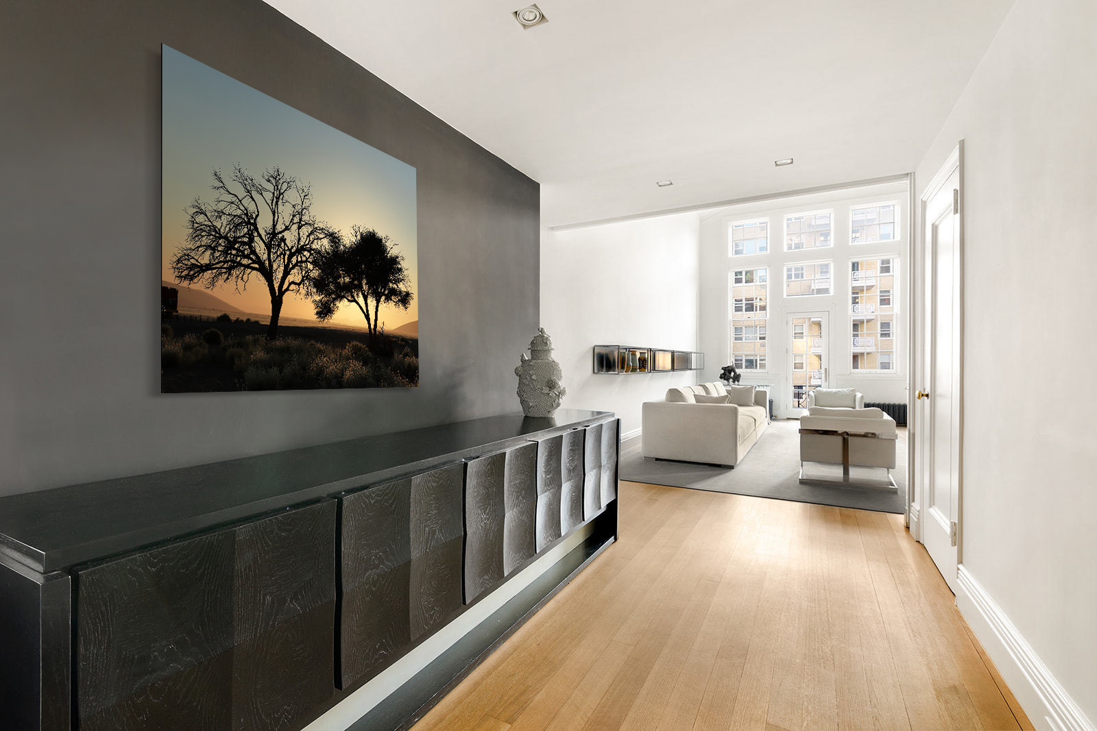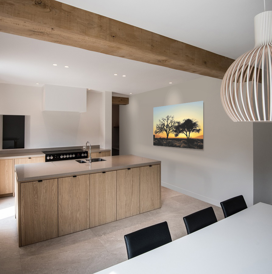 Die Fototafel ist auf der Rückseite mit Aluminium-Aufhängeplatten ausgestattet, mit denen Sie Ihre Fotokunst problemlos aufhängen können. Gegen Aufpreis ist die Fotokunst auch mit dem luxuriösen Aluminiumprofil erhältlich, sodass die Kunst 2 cm von der Wand entfernt hängt und Dies erzeugt einen schwebenden Effekt.