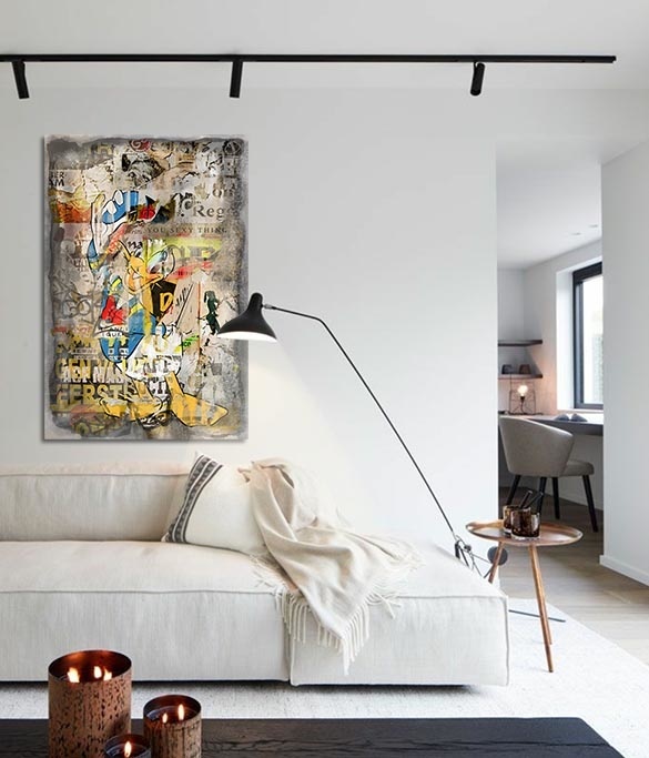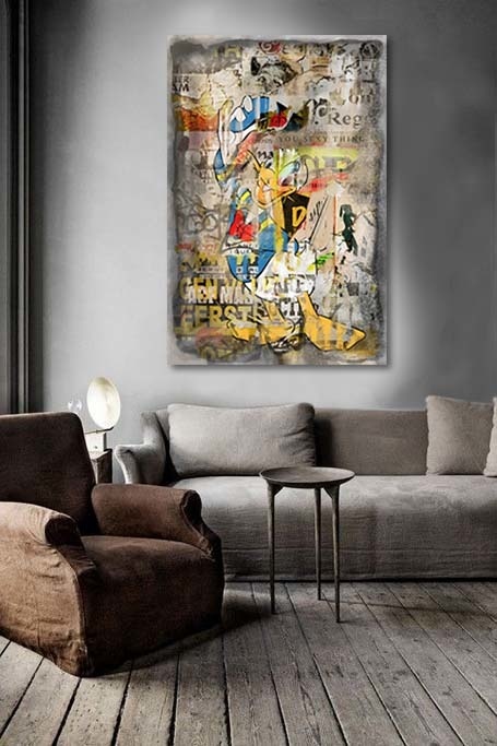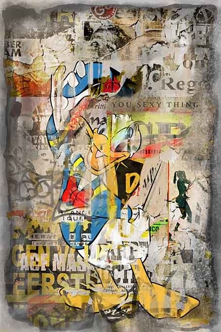 Sind Sie ein Donald Duck-Fan oder möchten Sie Ihrer Einrichtung einen schönen Retro-Look verleihen? Dann wählen Sie diese 'Donald'-Fotokunst. Man erkennt die Zeichentrickfigur sofort an den orange-gelben Beinen, dem Schnabel und dem markanten Matrosenanzug. Die verwitterten, zerrissenen Poster verleihen der Fotokunst einen antiken Look. Die noch sichtbaren Texte geben der Fotokunst eine räumliche Wirkung. Besonders auf Plexiglas kommt dies sehr schön zum Ausdruck. Bevorzugen Sie einen Retro-Look mit mattem Finish? Wählen Sie dann dibond. Dieses Fotokunstwerk ist ein Xiart Special und in limitierter Auflage erhältlich.