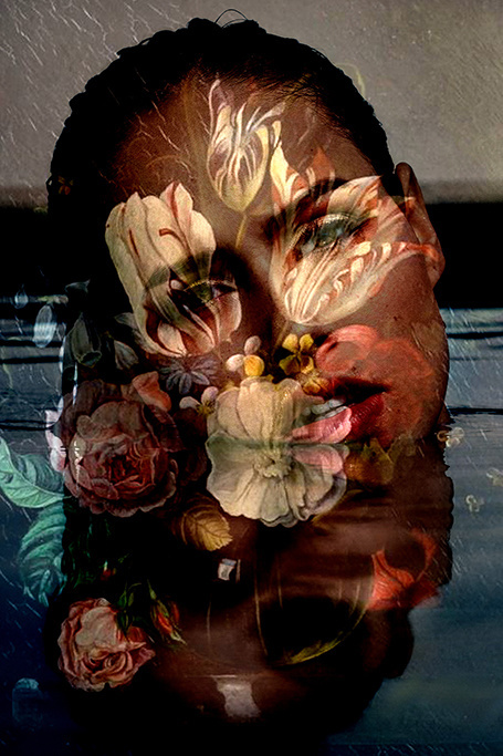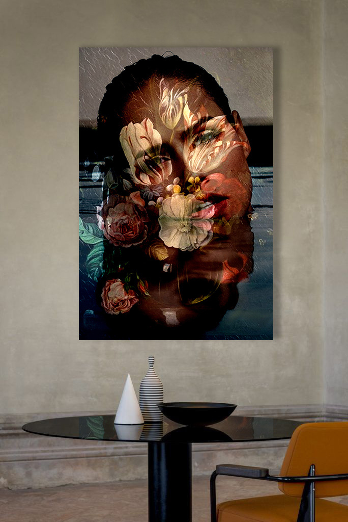 Ein schönes Porträt einer Frau im Wasser. Auf ihrem Gesicht kann man die Reflexion verschiedener Blumenarten sehen. Der rätselhafte Blick in ihren Augen überlässt viel der Fantasie. Mit diesem Fotokunstwerk können Sie ganz einfach eine verträumte Atmosphäre in Ihrem Raum schaffen. Die perfekte Wahl, wenn Sie manchmal dem Alltag entfliehen und gleichzeitig eine warme Atmosphäre kreieren wollen. Ausgestattet mit einem Echtheitszertifikat.