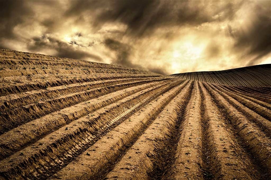 Bearbeitete Boden, schön durch seine Erleichterung, die Farbe, Tiefe und schönen Hintergrund des Himmels.