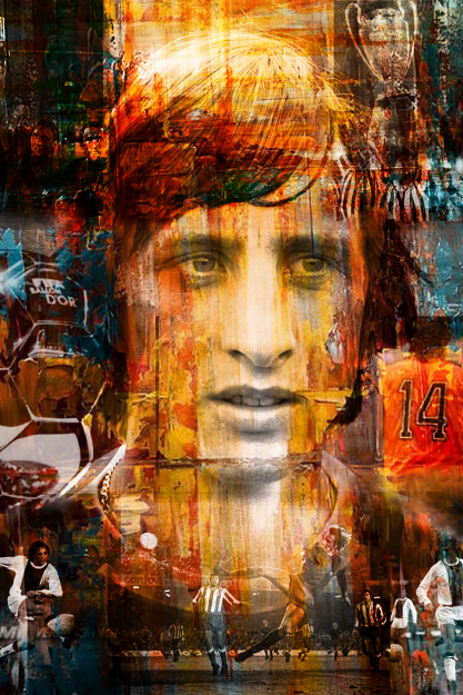 Eine beeindruckende Fotokunst des "Erlösers" Johan Cruijff. Der größte Fußballer der niederländischen Geschichte. Berühmt für seine großen Erfolge, aber auch für seine unnachahmlichen Aussagen. Diese Fotokunst beinhaltet mehrere ikonische Momente, wie den Gewinn des Ballon D'or und des Europacups I, sowie seine erkennbare Rückennummer 14. . Mit dieser Fotokunst huldigen Sie dem legendären Fußballer und hängen sich gleichzeitig einen ausdrucksstarken Blickfang an die Wand. Nur bei Xiart in limitierter Auflage erhältlich. Inklusive Echtheitszertifikat.