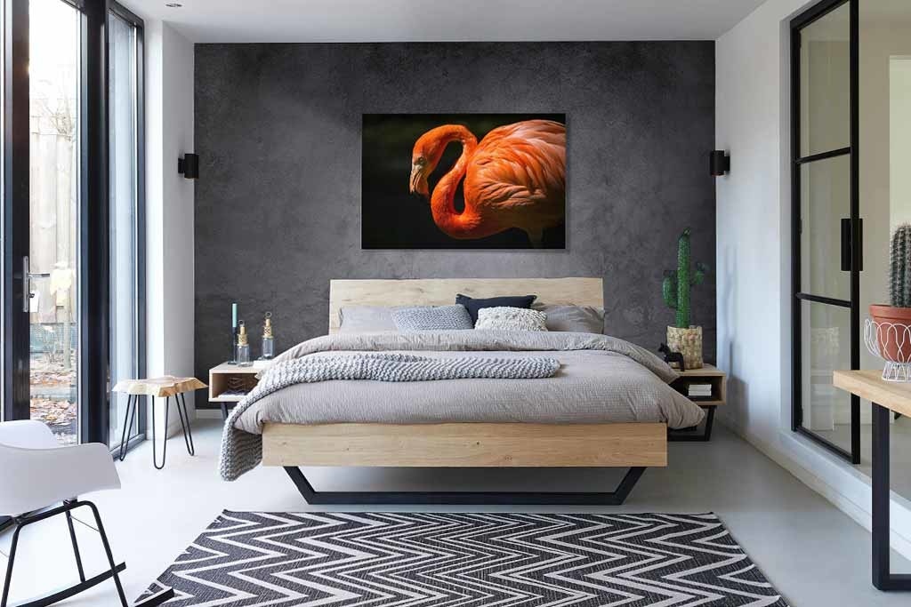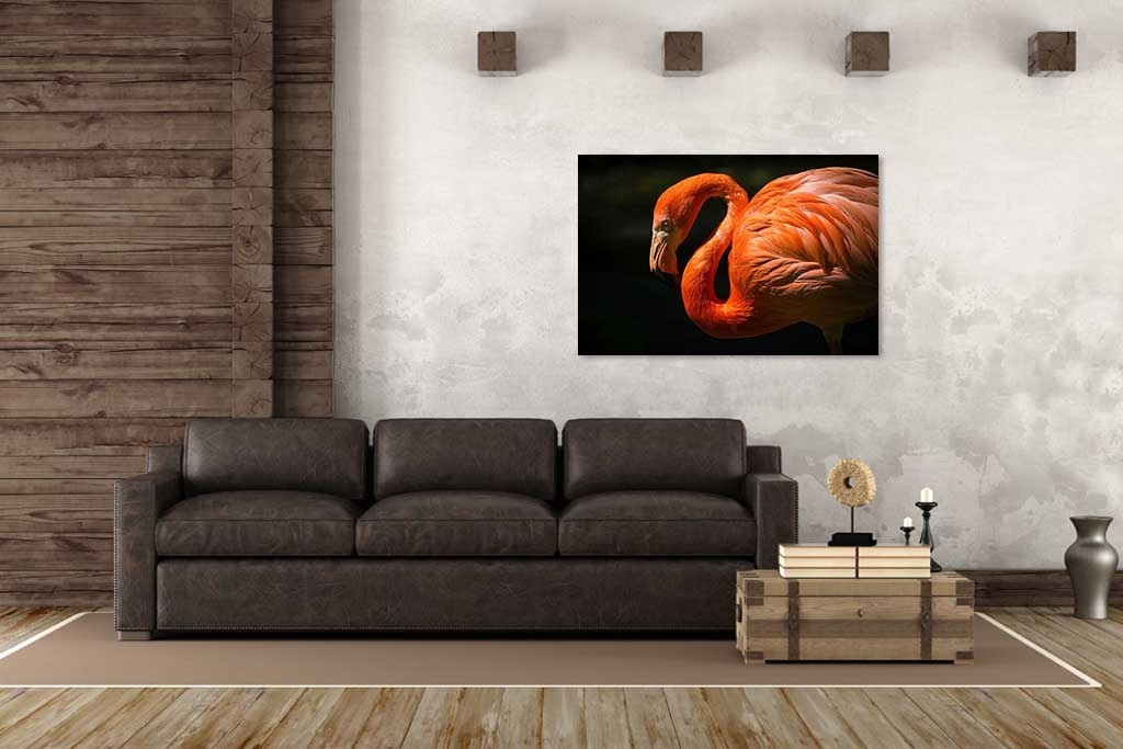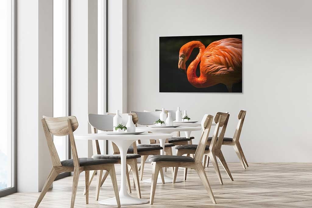 Dieses Tier ist sehr fotogen und sieht in jedem Raum des Hauses gut aus. Durch seine leuchtenden Farben sticht das Bild dieses Flamingos direkt von der Wand ab. Schön zu kombinieren mit anderen Bildern von bunten Tieren. Sieht gut aus, zum Beispiel im Wohnzimmer, Schlafzimmer oder Büro.