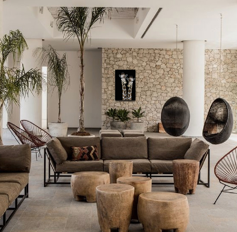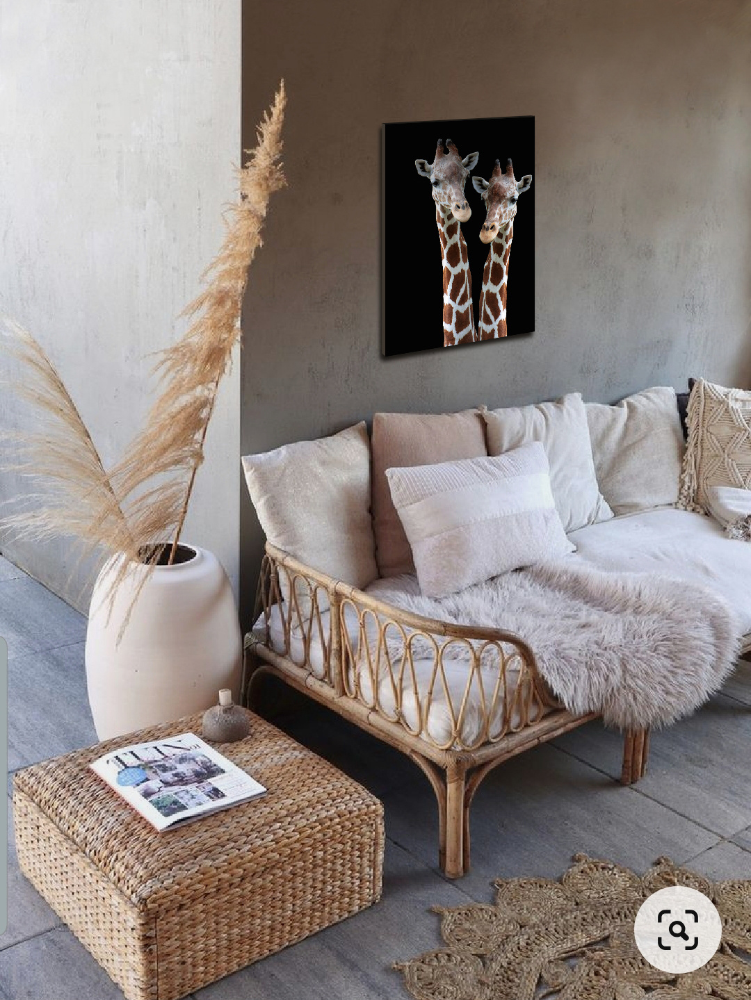 Gehen Sie zu Hause auf Safari und stellen Sie sich jeden Tag in der Natur vor. Entdecken Sie alle schönen Eigenschaften der Giraffe auf dieser 'Giraffe Safari' Fotokunst. Das weißliche Fell ist voll von braunen Flecken, die ein schönes Muster bilden. Dank des dunklen Hintergrunds werden alle Details deutlich sichtbar und die Kunst scheint zum Leben zu erwachen. Passt perfekt in einen urbanen Dschungel-Einrichtungsstil, ist aber auch eine schöne Ergänzung in einer ländlichen, modernen oder schicken Einrichtung.