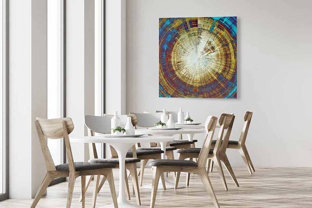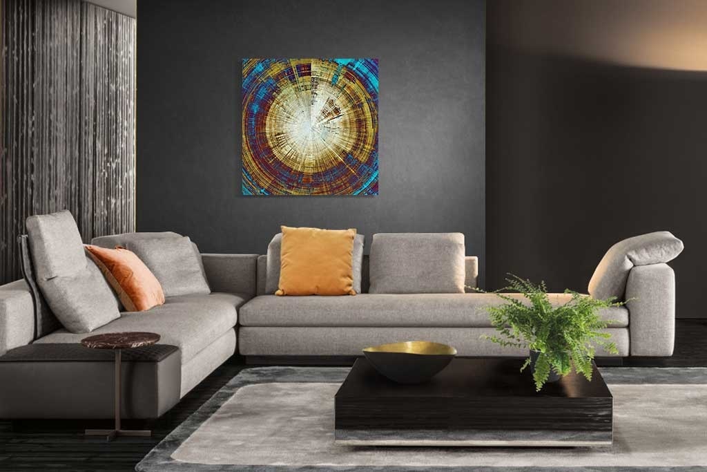 Bild von etwas, das einem Tunnel ähnelt. Das Auge wird durch die Kreise direkt in die Mitte des Bildes gezogen. Durch den schönen und gut abgestimmten Einsatz von Farben sieht dieses Bild an jeder Wand in jedem Raum gut aus. Schön, wenn 2 nebeneinander hängen. Passt zu vielen verschiedenen Wohnstilen.
