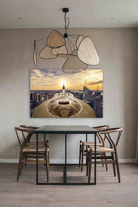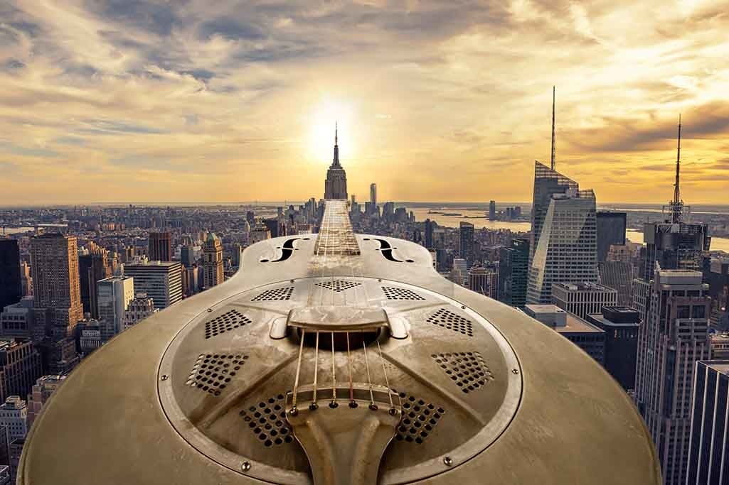 Wahnsinnige Kunst, speziell für Xiart entwickelt. Kunstvoll platziert, eine Country-Gitarre, mit auf dem Untergrund die großartige Stadt New York und das Empire State Building bei Sonnenuntergang. Die Reflexion der Sonne setzt sich über die Saiten der Gitarre fort. Erhältlich in limitierter Auflage, mit Echtheitszertifikat.
