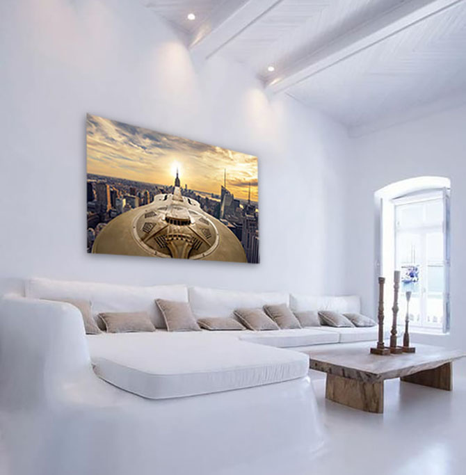 Da das ausgewählte Bild direkt auf Plexiglas gedruckt wird und bei größeren Abmessungen eine Dicke von 3 mm bis 5 mm aufweist, erhält das Bildmaterial noch mehr Tiefe. Sie haben das Gefühl, sozusagen in das Foto eintreten zu können. Dies ist hauptsächlich auf die Tatsache zurückzuführen, dass Plexiglas mehr Licht durchlässt als normales Glas. Die Farben wirken schärfer, fast brillant und es gibt einen optimalen Tiefeneffekt und damit Kontrast. Fotokunst, bei der die leuchtenden Farben mit einer langen Lebensdauer und einem luxuriösen Aussehen spritzen.