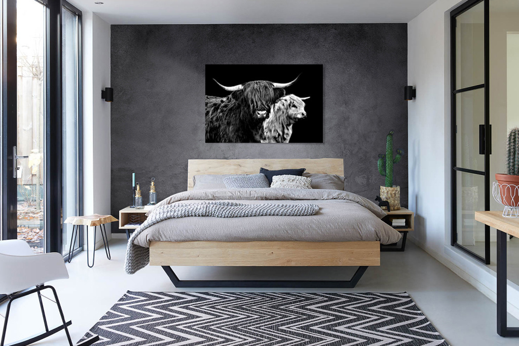 Die Fototafel hat rundum ein luxuriöses Aluminiumprofil auf der Rückseite und kann mit einem Schraubendaumen (Haken) an die Wand gehängt werden. Das hintere Profil sorgt für Stabilität und verhindert ein Verziehen der Verkleidung. Da das Profil 2 Zentimeter dick ist, wird ein schwebender Effekt Ihres Kunstwerks an der Wand erzeugt.