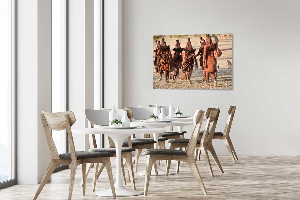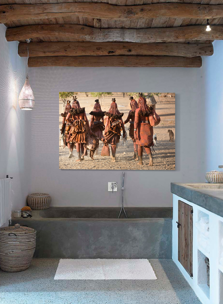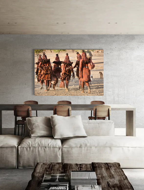 Stammesfrauen, die zur Arbeit gehen.  Kulturelles Foto in schönen Erdtönen.