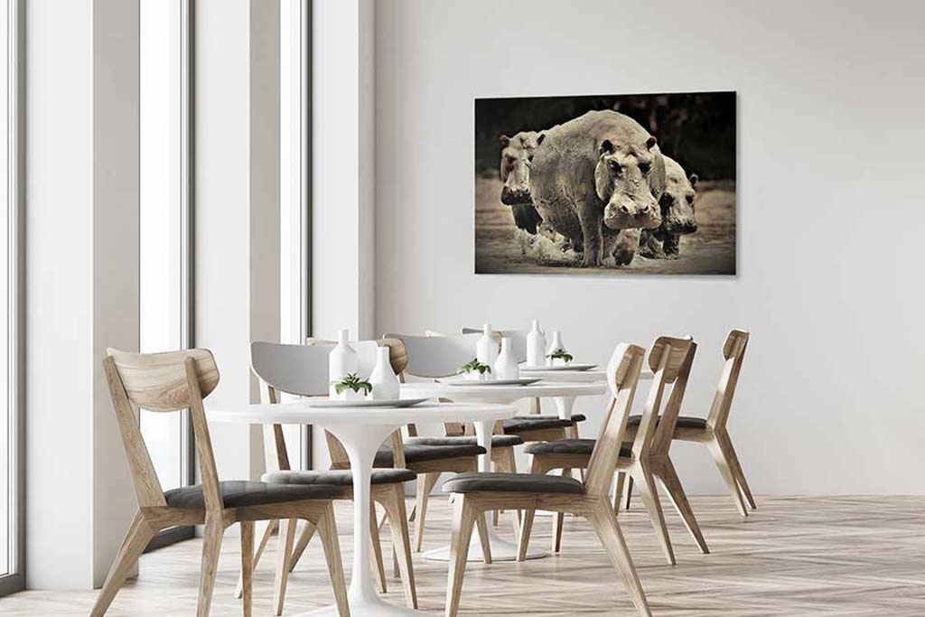 Die Fototafel hat rundum ein luxuriöses Aluminiumprofil auf der Rückseite und kann mit einem Schraubendaumen (Haken) an die Wand gehängt werden. Das hintere Profil sorgt für Stabilität und verhindert ein Verziehen der Verkleidung. Da das Profil 2 Zentimeter dick ist, wird ein schwebender Effekt Ihres Kunstwerks an der Wand erzeugt.
