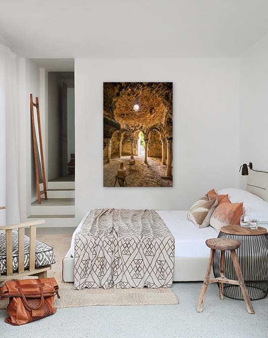 Schöne Darstellung eines historischen arabischen Bades, schöne gedämpfte Farben und schönes Licht von der Sonne, machen diese Kunst, auffallend schön in fast jedem Interieur.
