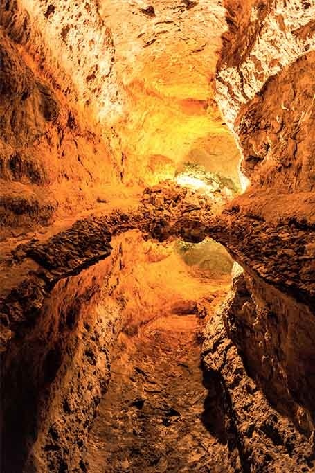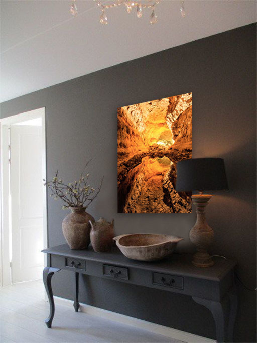 Schönes Stück Natur einer Höhle, die diese schönen Farben durch das Licht der Sonne bekommt. Schöne warme Naturtöne, die sich in vielen Innenräumen gut machen.