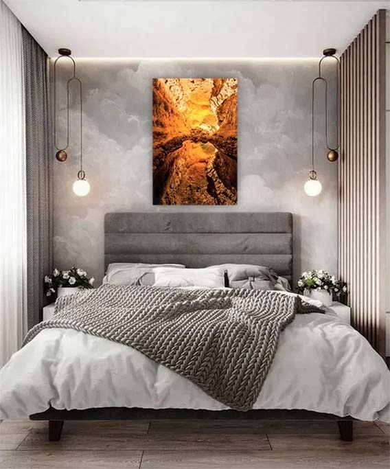 Da das ausgewählte Bild direkt auf Plexiglas gedruckt wird und bei größeren Abmessungen eine Dicke von 3 mm bis 5 mm aufweist, erhält das Bildmaterial noch mehr Tiefe. Sie haben das Gefühl, sozusagen in das Foto eintreten zu können. Dies ist hauptsächlich auf die Tatsache zurückzuführen, dass Plexiglas mehr Licht durchlässt als normales Glas. Die Farben wirken schärfer, fast brillant und es gibt einen optimalen Tiefeneffekt und damit Kontrast. Fotokunst, bei der die leuchtenden Farben mit einer langen Lebensdauer und einem luxuriösen Aussehen spritzen.