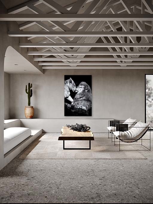 Tier-Fotokunst ist großartig, wenn Sie neues Leben in Ihr Zuhause bringen wollen. Mit diesem Fotokunstwerk von zwei Löwen ist Ihnen ein Blickfang in Ihrem Raum sicher. Ein männlicher und ein weiblicher Löwe geben sich einen Kuss, was ein schönes, herzerwärmendes Bild ergibt. Mit diesem Löwen-Fotokunstwerk an Ihrer Wand können Sie ein kraftvolles Statement abgeben, das Sie sicher beeindrucken wird. Dieses intensive Fotokunstwerk sieht in jedem Raum schön aus, z. B. im Wohn- oder Schlafzimmer. Kissing Lion' ist ein Xiart Special und in limitierter Auflage erhältlich. Inklusive Echtheitszertifikat.