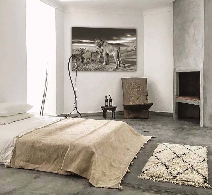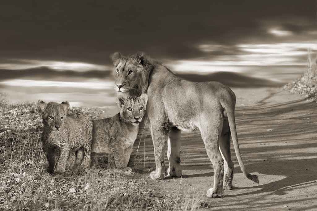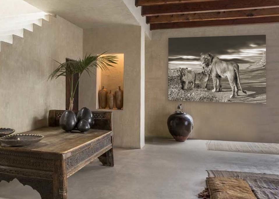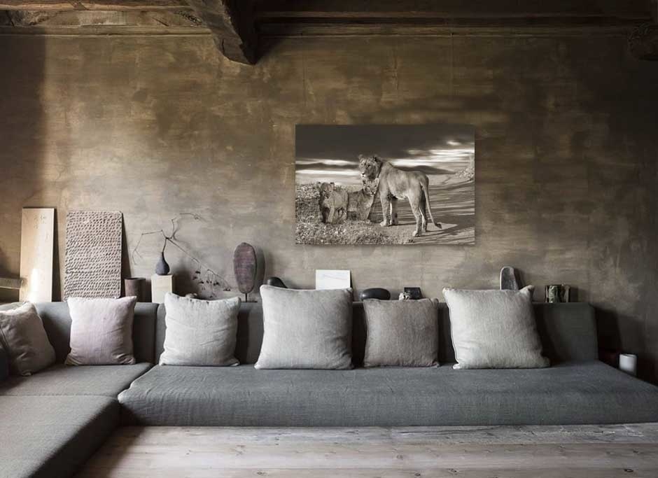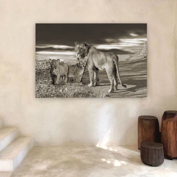 Tolles Kunstwerk eines Löwen mit 2 Jungen, schöne Sepia-Töne dargestellt, sieht schön in einem natürlichen Look Interieur. Auch in Farbe erhältlich. Einzigartig, speziell für Xiart hergestellt, nirgendwo sonst erhältlich mit Echtheitszertifikat.