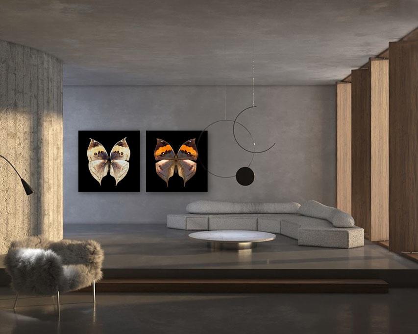 Schöner Schmetterling auf schwarzem Hintergrund, sehr schön zu kombinieren mit einem anderen Schmetterling aus der Sammlung.