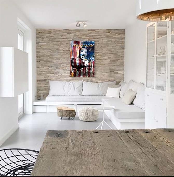 I have a dream. Die legendäre Rede, mit der er Millionen von Menschen die Perspektive von Freiheit und Gleichheit für alle gibt. Diese Fotokunst ist eine Retrospektive der Träume, Aktionen und des Vermächtnisses dieser Legende. Sein kraftvoller Blick und die abstrakten, farbigen Linien machen dieses Foto-Kunstwerk zu einem echten Hingucker. Martin Luther King' ist ein Xiart Special und ist in limitierter Auflage erhältlich. Beim Kauf dieser Fotokunst erhalten Sie ein Echtheitszertifikat.