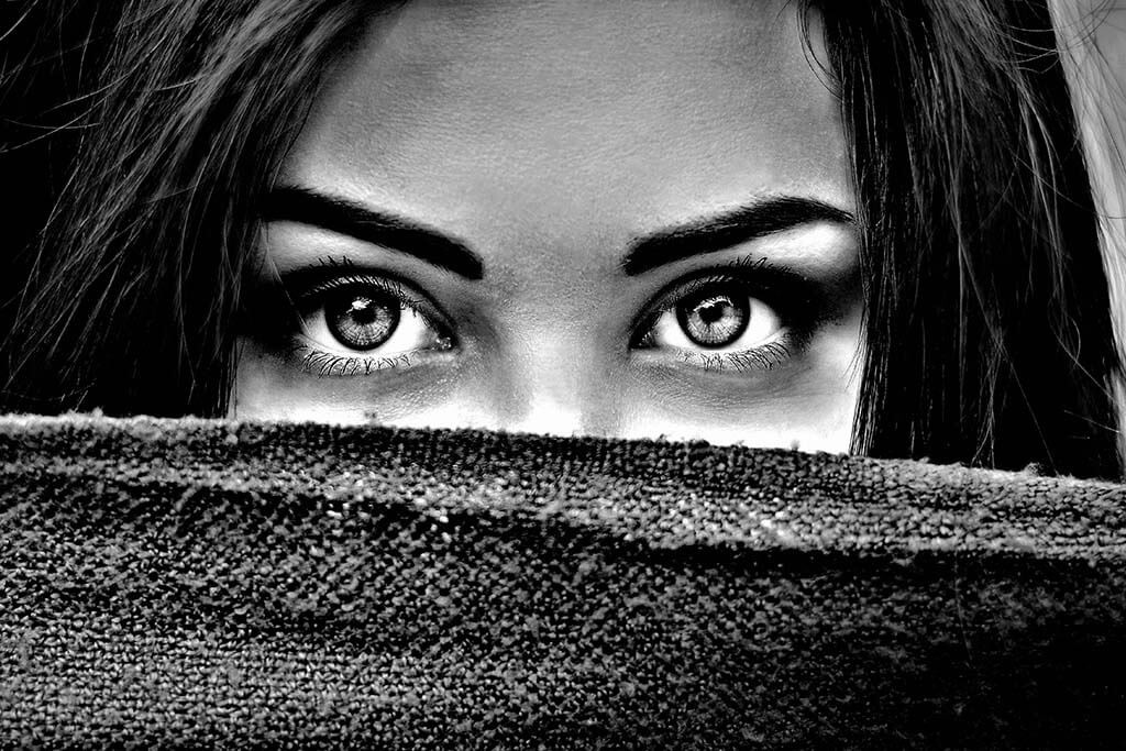 Mysteriöse Augen, Blickfang, Eyecatcher, faszinierend, so schön in Schwarz und Weiß ausgeführt, passt sowohl über dem Bett als auch im Wohnzimmer fantastisch.