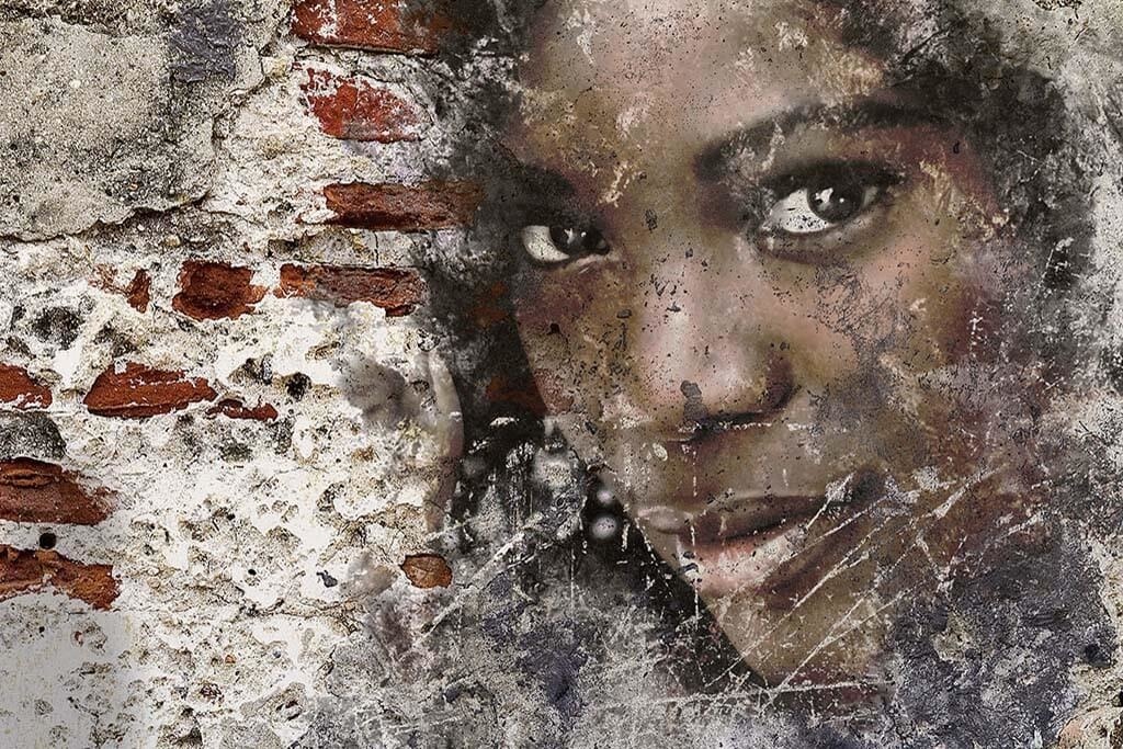 Bild einer Frau Mixed Media Art, neutrale ruhige Farben, die zu jedem Wohnstil passen.