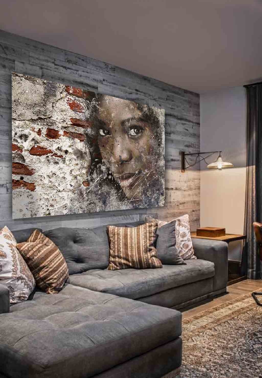 Die Fototafel hat rundum ein luxuriöses Aluminiumprofil auf der Rückseite und kann mit einem Schraubendaumen (Haken) an die Wand gehängt werden. Das hintere Profil sorgt für Stabilität und verhindert ein Verziehen der Verkleidung. Da das Profil 2 Zentimeter dick ist, wird ein schwebender Effekt Ihres Kunstwerks an der Wand erzeugt.