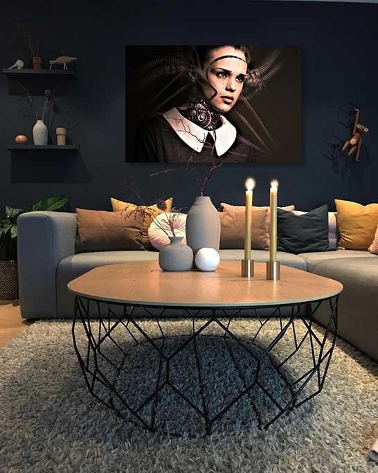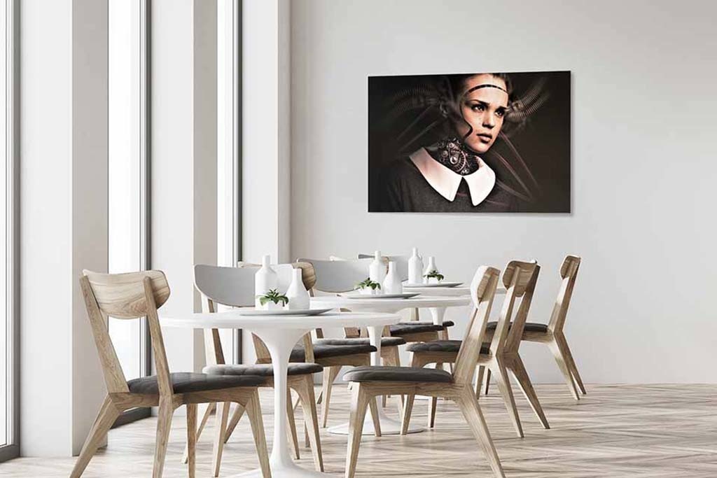 Die Fototafel hat rundum ein luxuriöses Aluminiumprofil auf der Rückseite und kann mit einem Schraubendaumen (Haken) an die Wand gehängt werden. Das hintere Profil sorgt für Stabilität und verhindert ein Verziehen der Verkleidung. Da das Profil 2 Zentimeter dick ist, wird ein schwebender Effekt Ihres Kunstwerks an der Wand erzeugt.