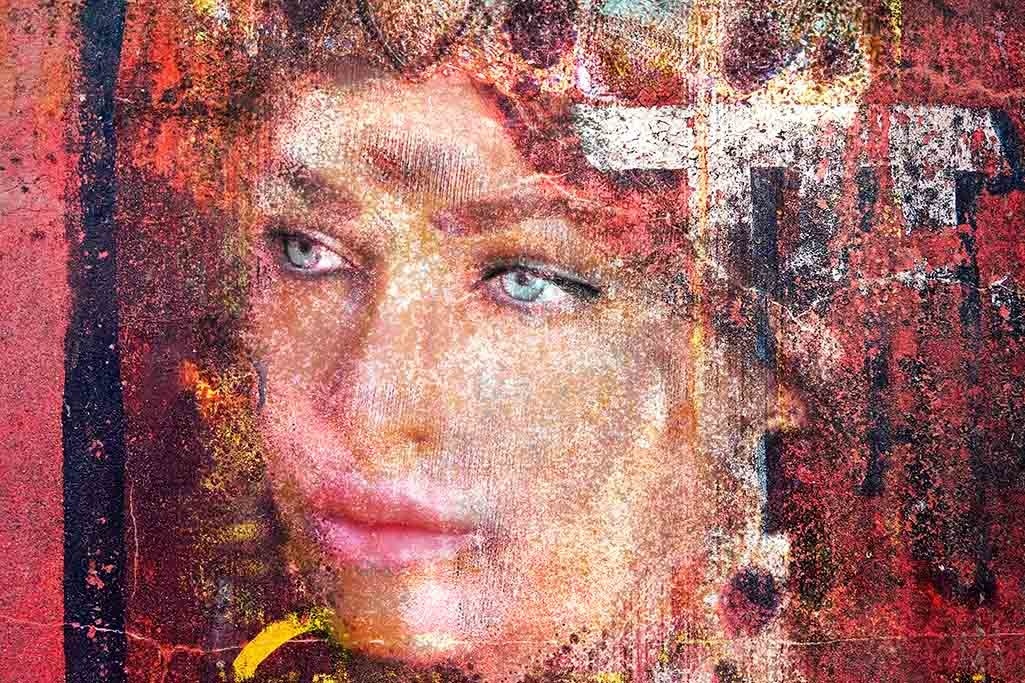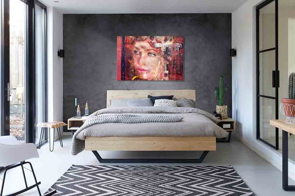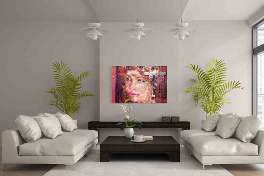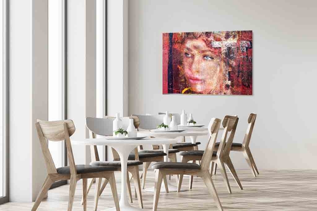 Exklusive Kunst, die nur bei Xiart erhältlich ist und eine Frau auf abstrakte Weise mit schönen, markanten Augen in einer besonderen Farbgebung darstellt.