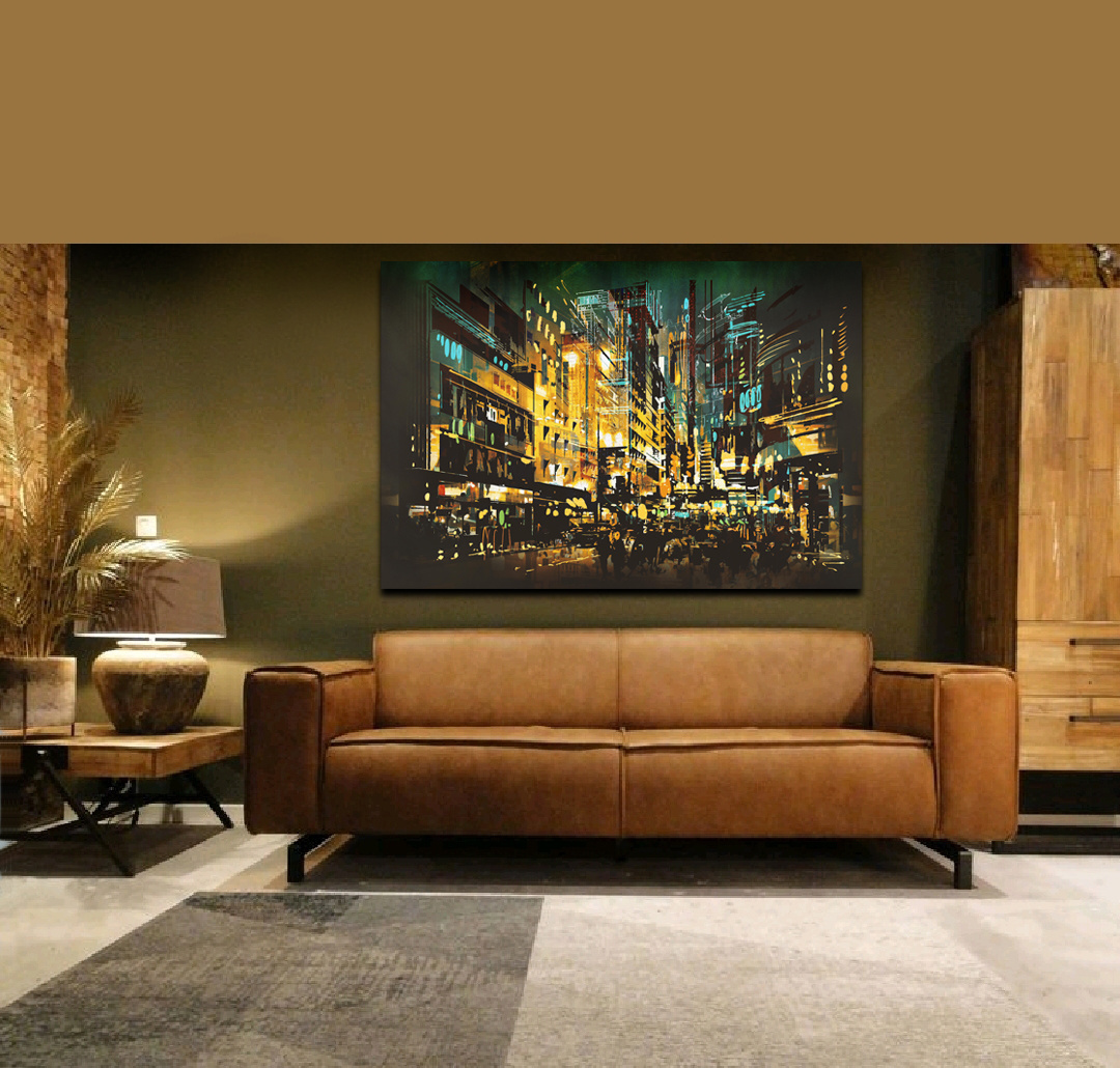 Ein schönes abstraktes Kunstwerk, fast futuristisch. Night Scene Cityscape' passt perfekt in ein schlichtes und modernes Interieur. Die klaren Linien und leuchtenden Farben vermitteln sofort das - von vielen Menschen geliebte - Großstadtgefühl. Abstrakte Kunst ist zeitlos und kann jahrelang aufgehängt werden, ohne langweilig zu werden. Dieses Kunstwerk sieht in Arbeitsräumen schön aus, verleiht aber auch dem Wohnzimmer, Schlafzimmer oder anderen häuslichen Räumen einen verspielten Look.