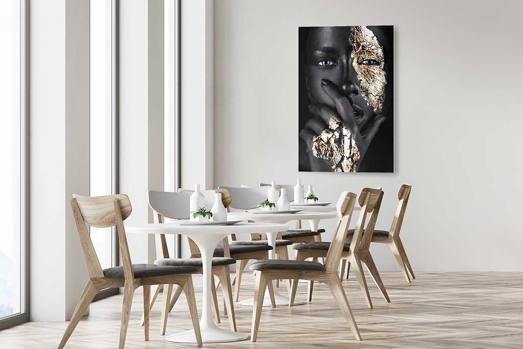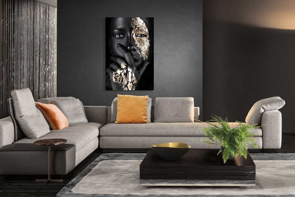 Ein absoluter Favorit aus unserer Kollektion! Diese Fotokunst hat schon so manches Interieur um einen luxuriösen Touch bereichert. Die schwarze Farbe im Gesicht einer Frau wirkt geheimnisvoll und die Farbe Schwarz wird oft mit Klasse und Stil assoziiert. Der schöne goldene Kontrast sorgt für eine beeindruckende Optik. Entscheiden Sie selbst, welche Geschichte diese Frau mit ihrem Blick erzählt und die Fotokunst wird Sie immer wieder aufs Neue verblüffen. Noir Goldest' passt sehr gut in eine moderne und schicke Einrichtung und ist in jedem Raum schön.