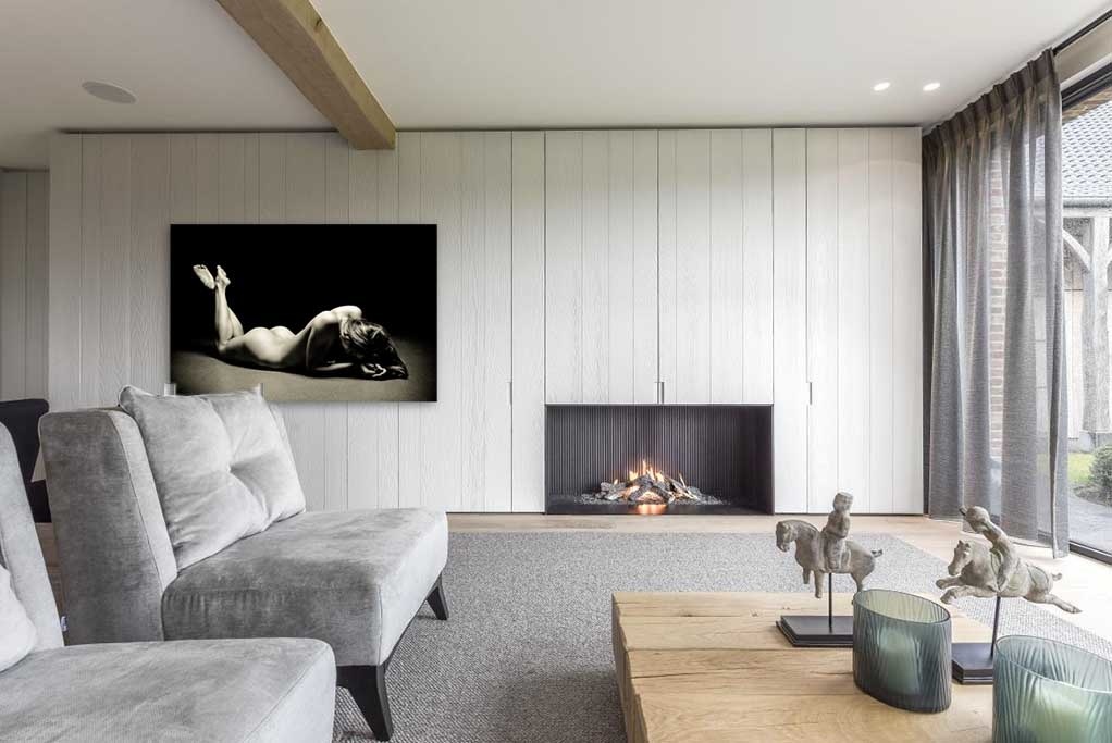 Die Fototafel hat rundum ein luxuriöses Aluminiumprofil auf der Rückseite und kann mit einem Schraubendaumen (Haken) an die Wand gehängt werden. Das hintere Profil sorgt für Stabilität und verhindert ein Verziehen der Verkleidung. Da das Profil 2 Zentimeter dick ist, wird ein schwebender Effekt Ihres Kunstwerks an der Wand erzeugt.