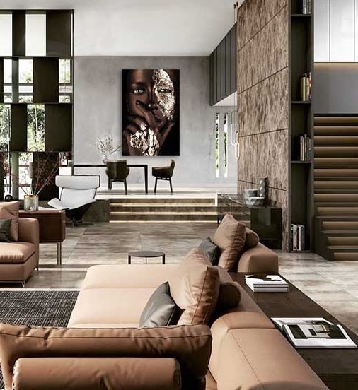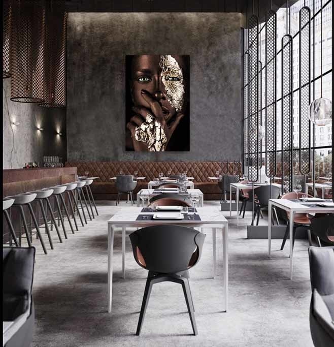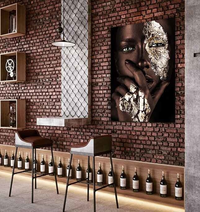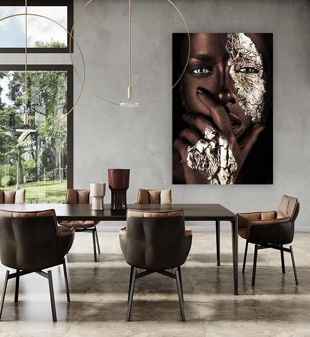 Speziell für unsere Kunden haben wir eine Variante von Painted Black in der warmen Farbe Braun mit Gold anfertigen lassen. . Diese Kunst wirkt weniger hart und dominant, verliert aber nichts von ihrer Kraft und wird in allen Innenräumen bezaubernd wirken.