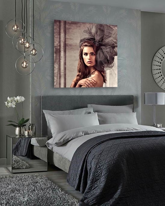 Die Fototafel hat rundum ein luxuriöses Aluminiumprofil auf der Rückseite und kann mit einem Schraubendaumen (Haken) an die Wand gehängt werden. Das hintere Profil sorgt für Stabilität und verhindert ein Verziehen der Verkleidung. Da das Profil 2 Zentimeter dick ist, wird ein schwebender Effekt Ihres Kunstwerks an der Wand erzeugt.